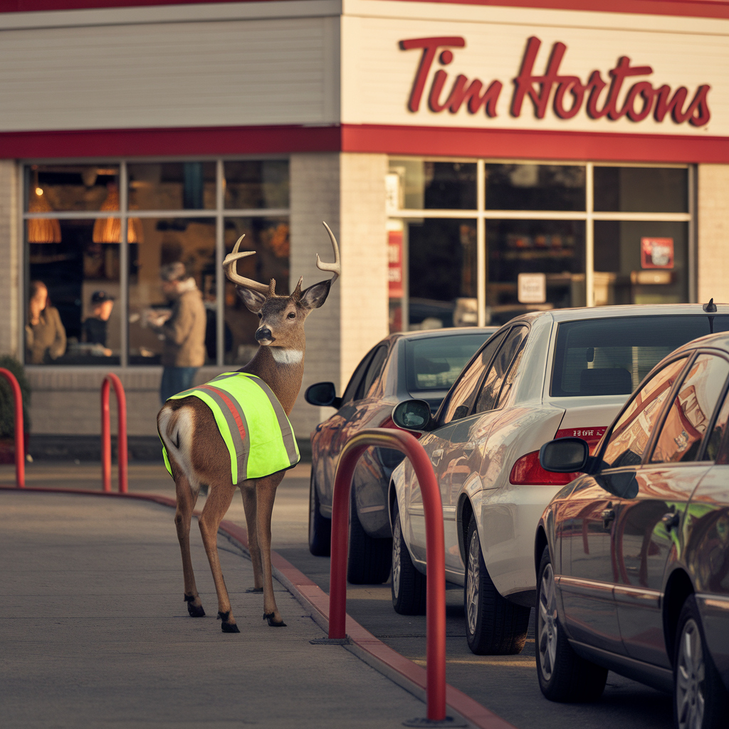 McBride BC – Residents woke up to a strange sight yesterday morning when a deer was spotted wandering through town wearing a bright orange high-visibility vest. The unexpected fashion choice has sparked both chuckles and confusion among the locals.